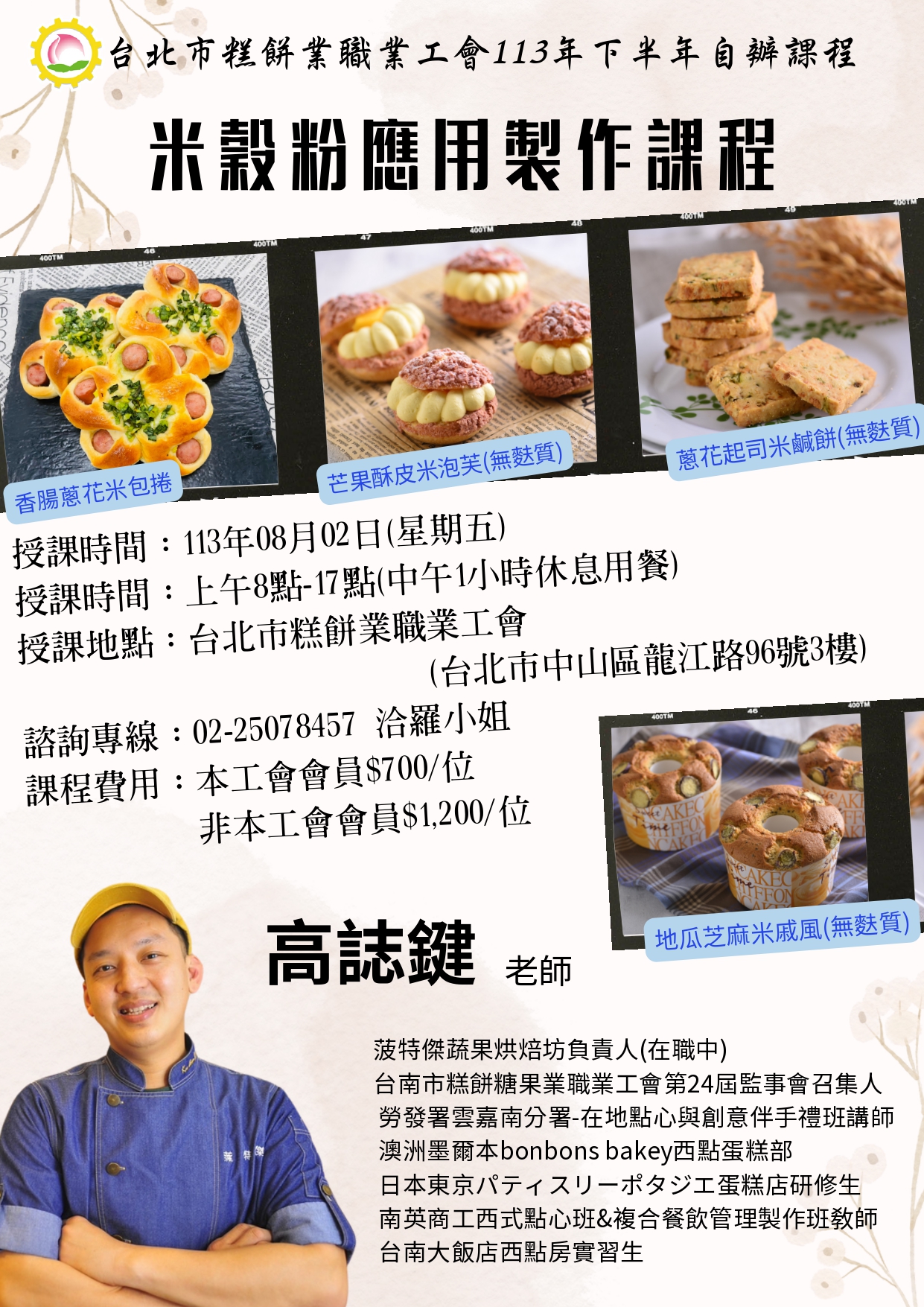 米穀粉應用製作課程 報名日期113-07-02 12:00