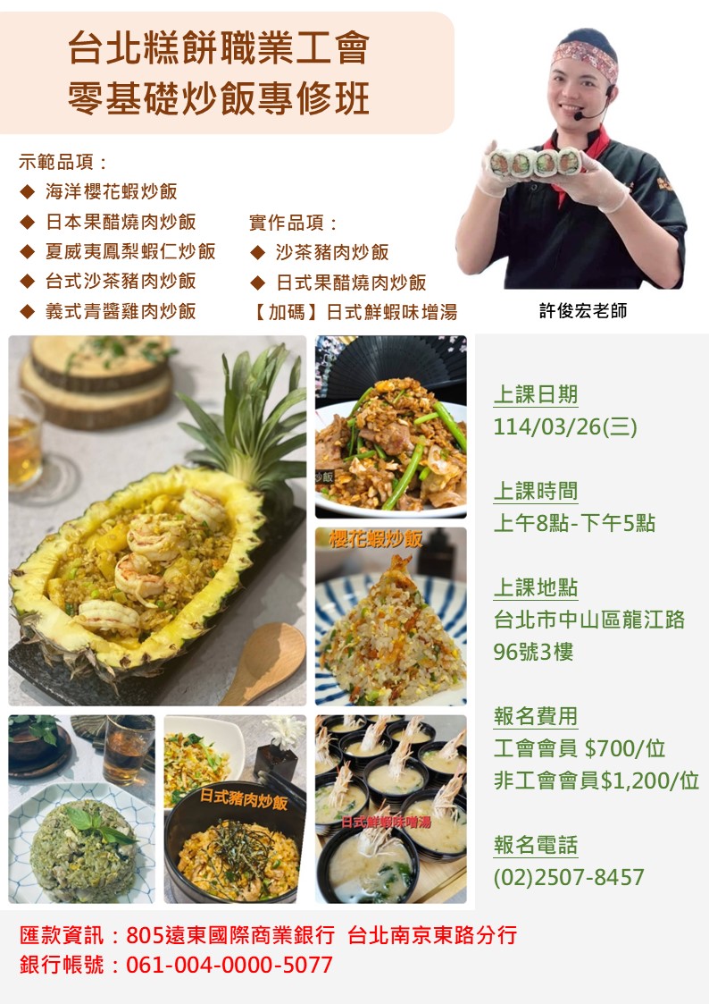 零基礎炒飯專修班 報名日期:114-02-26 12:00
