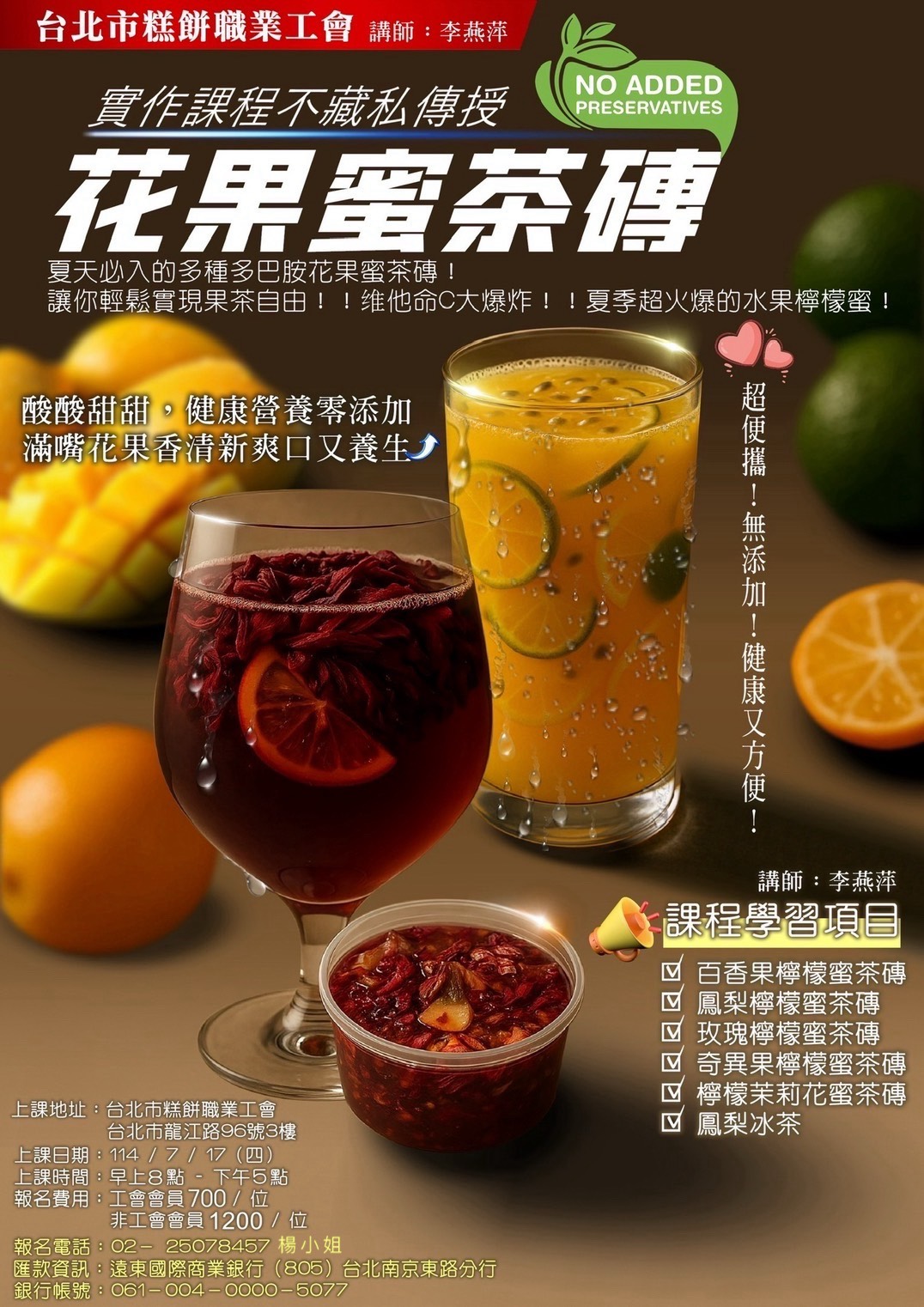 不藏私傳授花果蜜茶磚班 報名日期:114-06-17 12:00