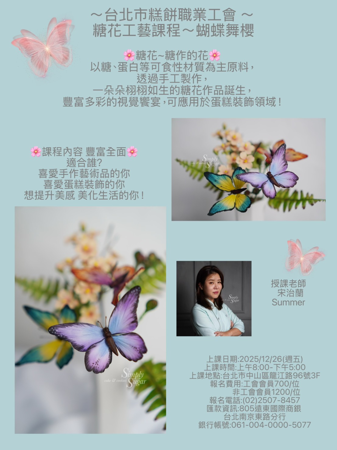 糖花工藝課程~蝴蝶舞櫻 報名日期:114-11-26 12:00
